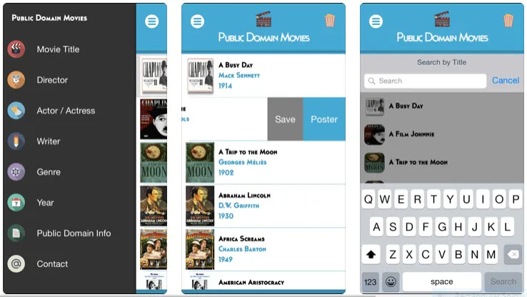 تعد أفلام المجال العام أيضًا الخيار المناسب لك عندما تتطلع إلى أفلام مجانية على iPhone لأنها ستوفر لك الآلاف من المجال العام الذي سيساعدك على تصفية المحتوى. على أساس الكاتب والسنة والمخرج والنوع ، يمكنك تصفية المحتوى. تعد الواجهة التي يتوفر بها هذا التطبيق مبتكرة للغاية لدرجة أنك لن تشعر أنك غير قادر على العثور على أفلامك المفضلة في جميع البرامج التلفزيونية. من خلال التوفر مع هذا النظام الأساسي ، ستتمكن من اكتشاف العديد من الأفلام والبرامج التلفزيونية الجديدة التي ربما لم تفكر في البحث عنها.