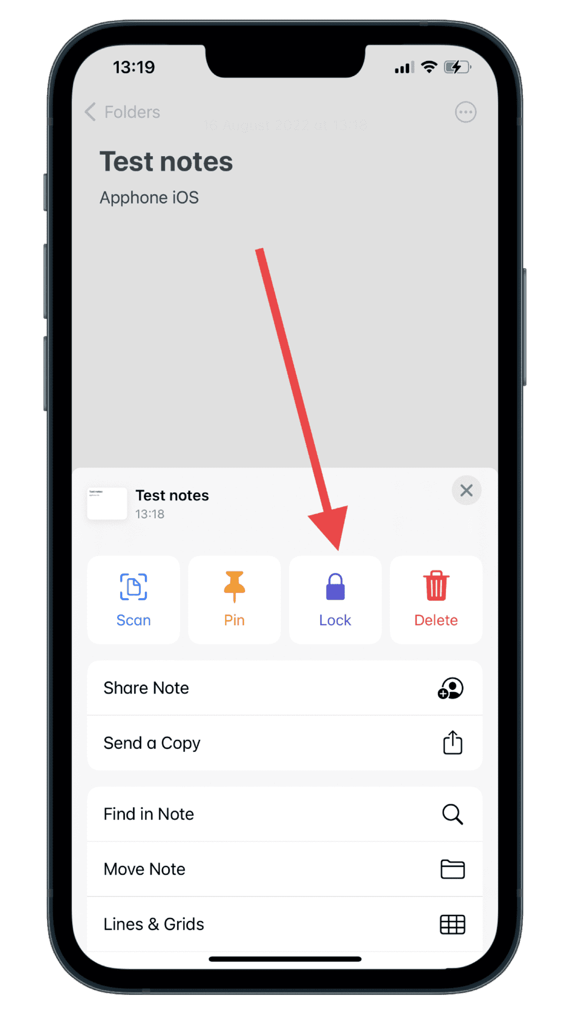 خطوات قفل الملاحظات في الايفون الخاصة بك في تطبيق Notes