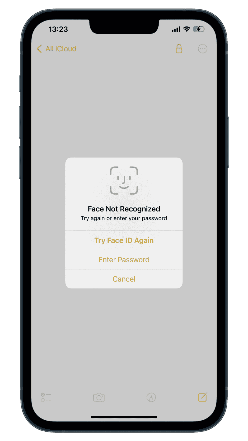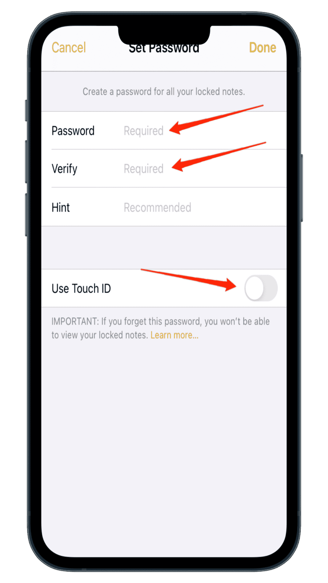 ملاحظة: إذا نسيت كلمة مرورك أو ربما قمت بتغيير Face ID / Touch ID ، فلن تتمكن من الوصول إلى ملاحظاتك مرة أخرى. لا تستطيع Apple مساعدتك في هذه الحالة