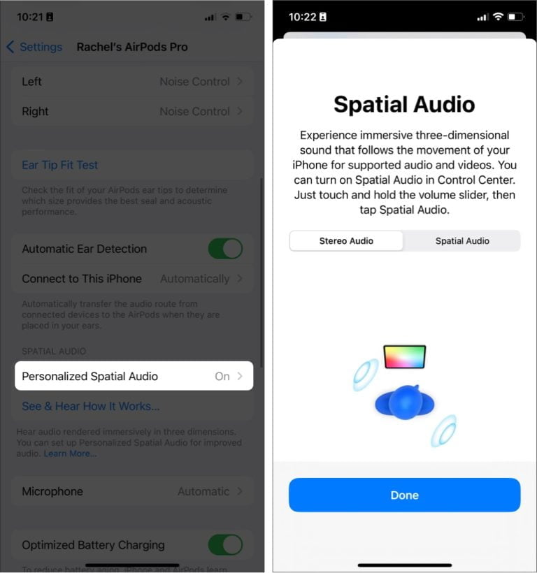 لذلك يعد Spatial Audio هو طريقة Apple لإنشاء تجربة صوت محيطي بزاوية 360 درجة. بالاقتران مع الصوت المكاني المخصص ، يتم تعيين ملف تعريف شخصي لكل فرد.