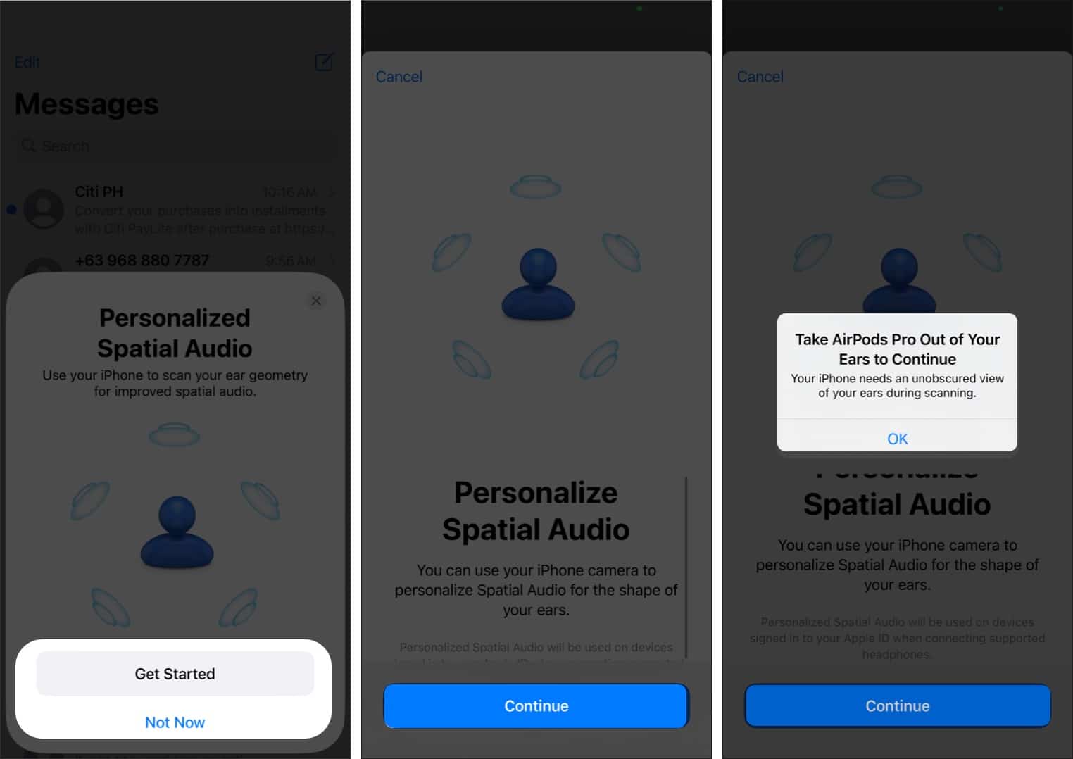بمجرد تحديث iPhone الخاص بك إلى iOS 16 وتوصيل AirPods بجهازك ، ستتلقى مطالبة تطلب منك تجربة Spatial Audio المخصص. إليك كيفية بدء العملية: